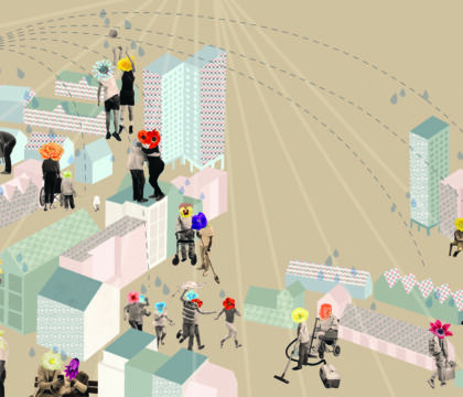 “Ik heb een mooi voorbeeld uit Amsterdam. Een van de mensen die ik volg is een theatermaker, hij maakt samen met mensen uit de wijk ‘community theater’. Op een open dag kwam er een buurtbewoner binnenlopen, die zelf z’n muziek had meegenomen. Het bleek snoeiharde hardcore. Die man trok z’n shirt uit en begon te dansen. De mensen om hem heen deinsden ervan terug. En wat deed de theatermaker? Hij deed hetzelfde. Hij danste mee. De buurtbewoner wist meteen dat hij welkom was. En dat is hoe het werkt. Vertrouwen. Durven dansen.”
